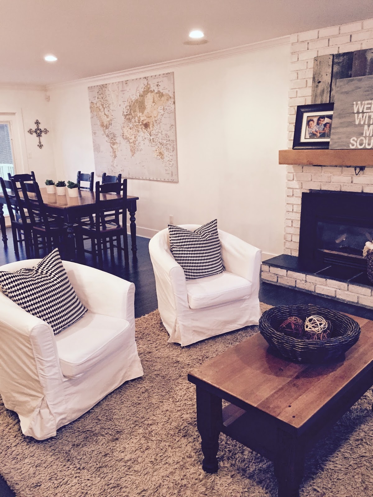 Yesterday I shared our updates to the entrance of the house and the main living area. Today I'll focus on the rest of the upstairs except the kitchen. No worries...tomorrow I will dedicate my whole post to the kitchen.